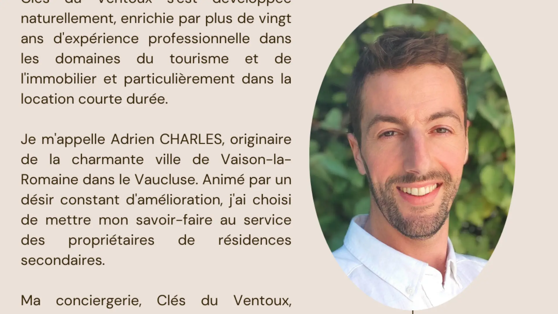 Adrien CHARLES, manager van Clés du Ventoux, maakt er een erezaak van om een vertrouwensrelatie met u op te bouwen.
