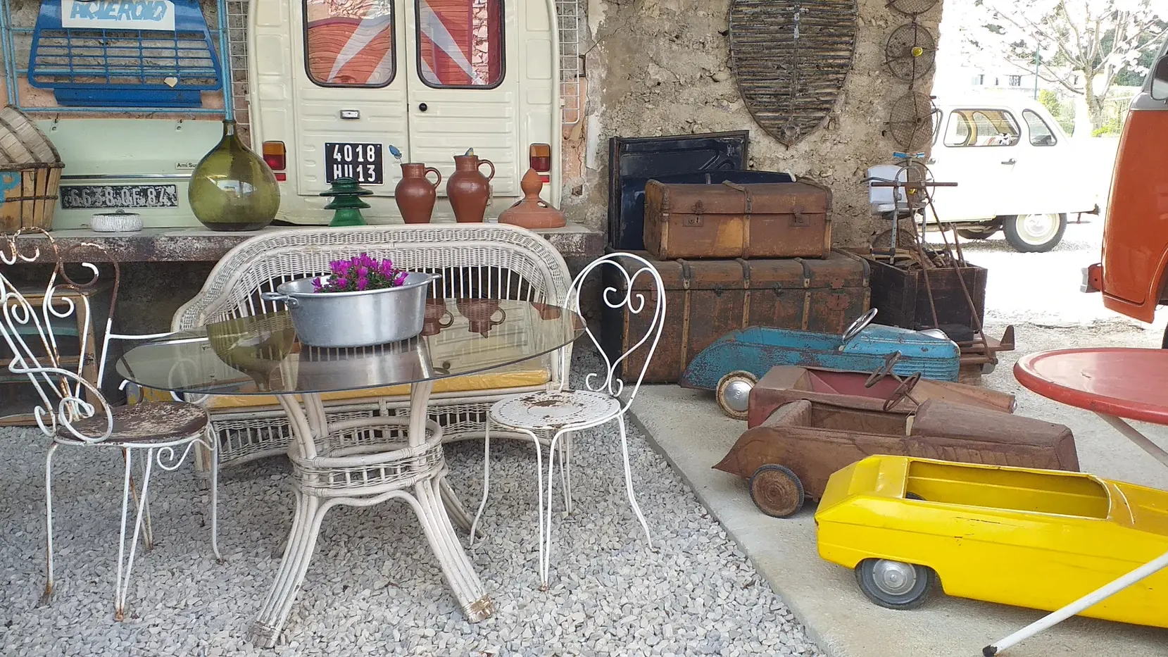 En 1900 et des Poussières, gelegen in Roaix, in het hart van de Vaucluse, is een unieke winkel gewijd aan liefhebbers van antiek, auto's, retro-objecten en authenticiteit. Al meer dan 20 jaar bieden de eigenaars, echte koopjesjagers in hart en nieren, een zorgvuldige selectie van zeldzame, oude of ongewone voorwerpen, klaar om hun plaats te vinden in uw huis.
