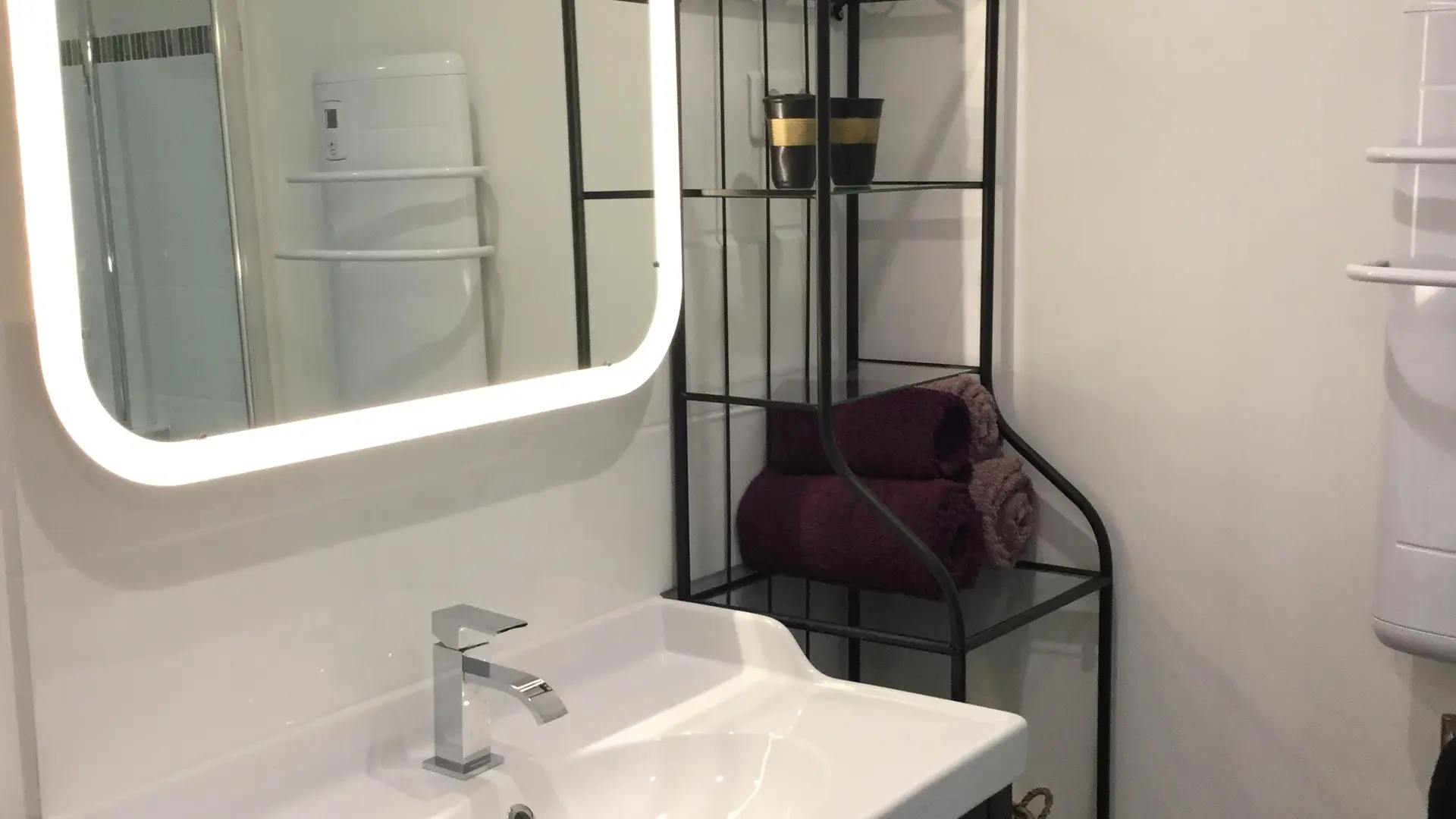 Deze ruime gîte bestaat uit een woonkamer met volledig ingerichte keuken, een grote slaapkamer met televisie, een mezzanine van 15m2 die gebruikt kan worden als tweede slaapkamer, en een badkamer.