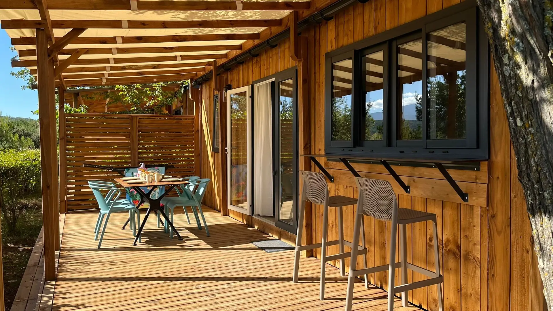 Kalmte, comfort, uitgerust met spelen, in een uitzonderlijke omgeving: panoramisch zicht over 360° en op de Mont-Ventoux. Ideale vakantie voor iedereen !