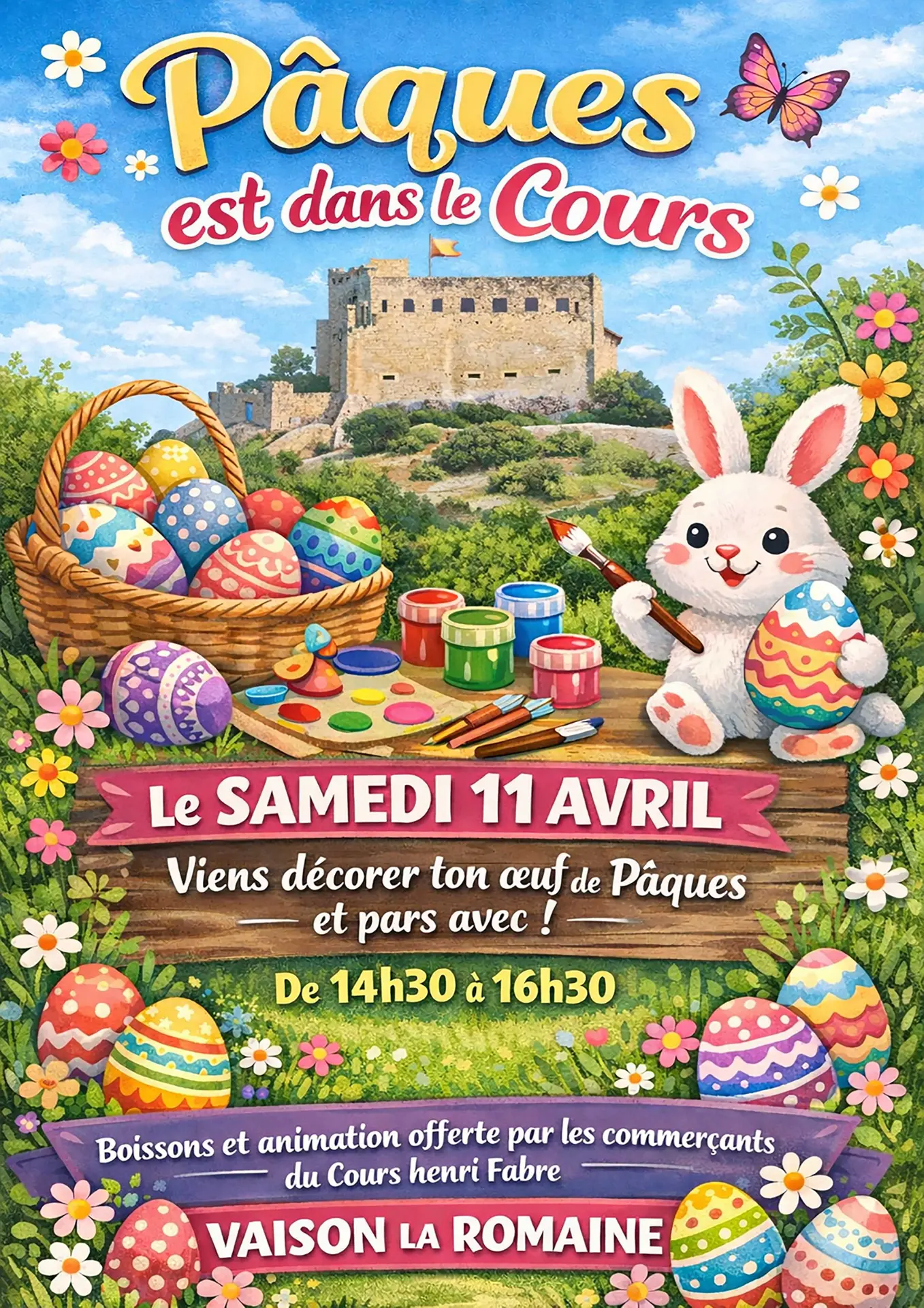 Workshop paaseieren versieren! Kom je eigen ei versieren op het Cours Henri Fabre en neem het mee naar huis. Drankjes en entertainment verzorgd door winkeliers.