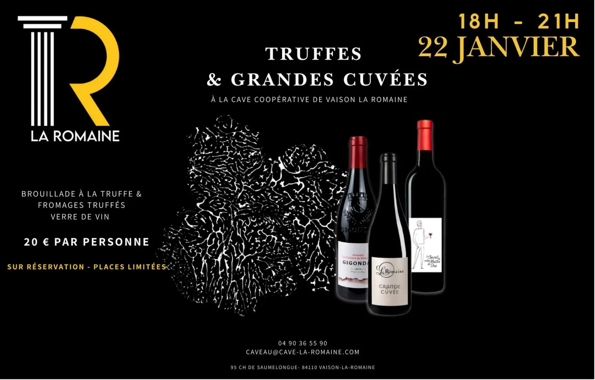 De Cave Coopérative de Vaison-la-Romaine nodigt je uit voor een warme en gezellige avond met gastronomische truffelgerechten, brouillade, kaas en wijn.